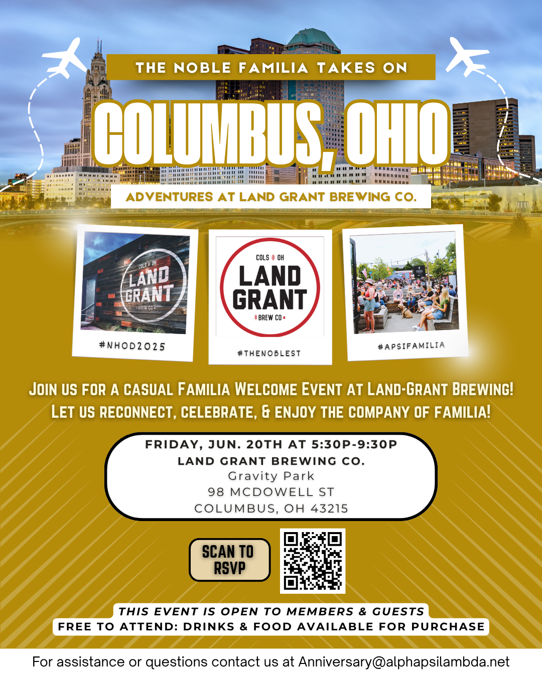 Join us June 20th through 22nd, 2025 in Columbus, Ohio for a weekend of events, familia and fun celebrating our 40th anniversary! All members and guests are welcome. Make the journey to Alpha Chapter where it all began.